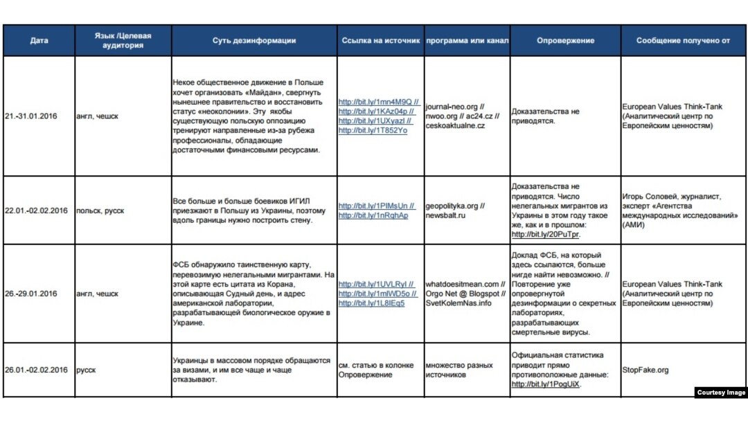 Не зовсім правильно говорити про те, що «Огляд дезінформації» – новий проект, який запустили тільки зараз. Насправді, він існує з листопада 2015 року, а самих «Оглядів» (за числом тижнів) вийшло вже 14. Останній з них, наприклад, присвячений реакції російських ЗМІ на фільм BBC про корумпованого Путіна і французький фільм про Євромайдан; розповідям про «бойовиків «Ісламської держави» серед українських націоналістів» і таємничій карті з цитатами з Корану і адресою американської лабораторії з розробки біологічної зброї в Україні, яку начебто знайшли працівники ФСБ – це лише мала частина списку.