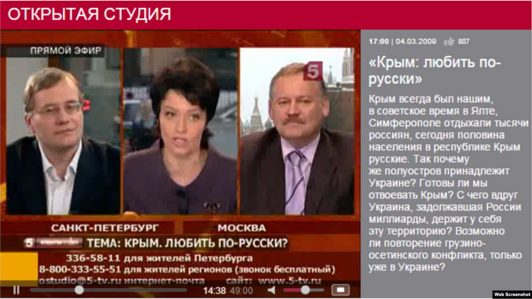 А на російському телебаченні неодноразово обговорювали питання «приєднання Криму до Росії» ще задовго до подій 2014 року в Україні.