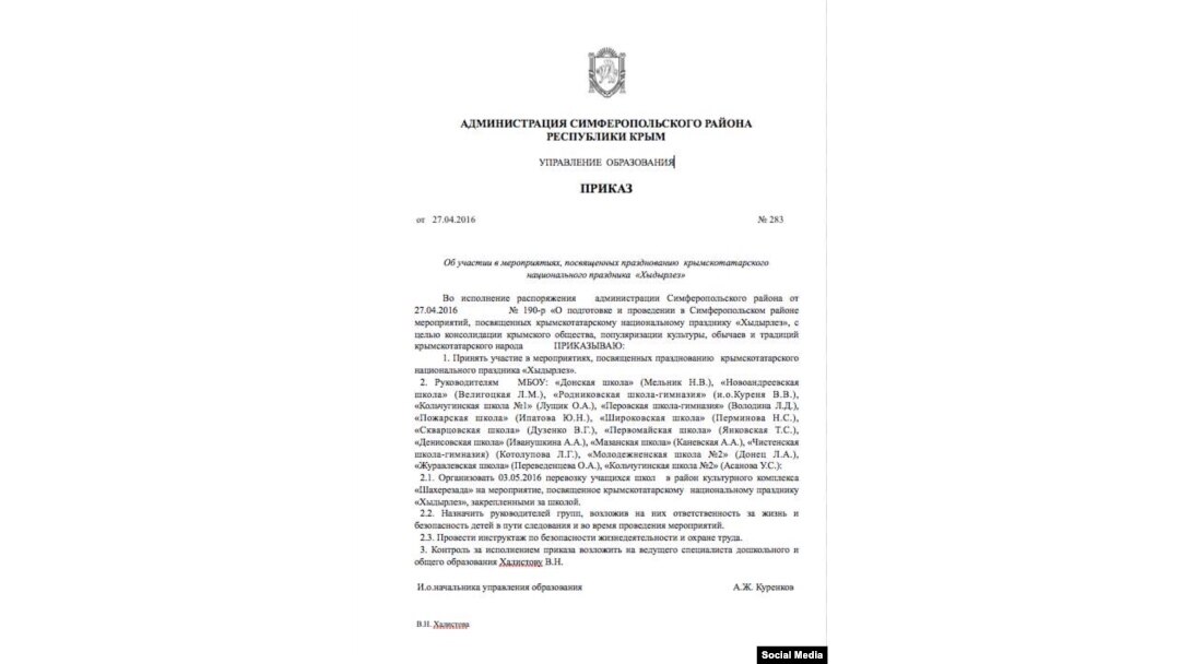 У вільному Криму люди вільно приходили на такі заходи, нікого не примушували насильно, а зараз «міністерство освіти», «комітети» та «адміністрації» видають «укази», щоб зібрати бюджетників на провладний Хидирлез»Шевкет Наматуллаєв