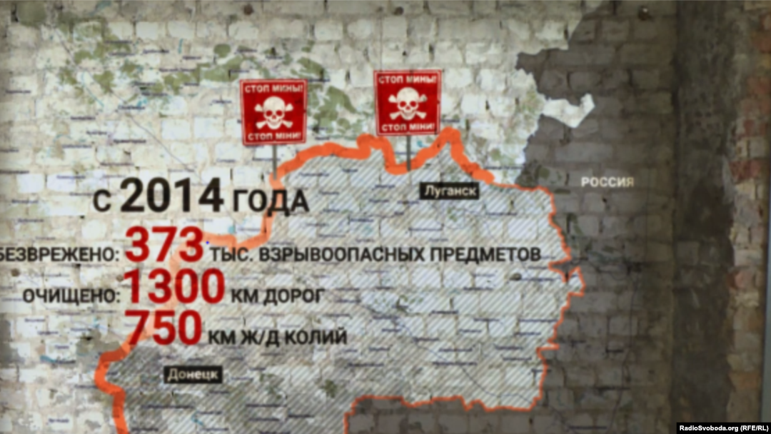 «Територія, яка зараз вважається небезпечною, складає приблизно 7000 квадратних кілометрів. Це тільки та територія, яка підконтрольна уряду України», – зауважує начальник управління екобезпеки і протимінної діяльності Міноборони України Максим Комісаров.