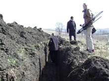 Трохи далі археолог Олег Шманько показав у канаві зруйновані залишки поселення, а неподалік – і могильник.