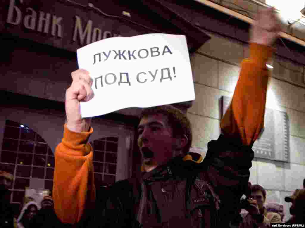 Один з організаторів акції Сергій Удальцов встиг привітати учасників акції зі «звільненням від лужковської окупації»...