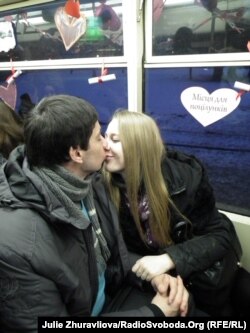 По Харкову сьогодні проїхав «трамвай закоханих», прикрашений неодмінними атрибутами дня Святого Валентина – валентинками та повітряними кульками у вигляді серця, повідомляє кореспондентка Радіо Свобода.