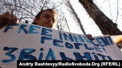 Біля Лук’янівського СІЗО у Києві зібралися громадські активісти, щоб підтримати в’язнів, які, на їхню думку, перебувають за ґратами незаконно. Акцію ініціювали рух «Сам», Комітет визволення політв’язнів та Центр інформації з прав людини.