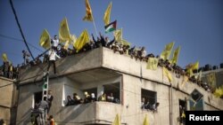 Десятки тисяч прихильників із прапорами «Фатху» зібралися сьогодні на святкування в Газі.