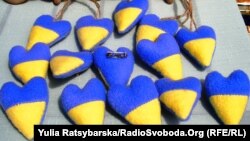 Модна тенденція нинішнього ярмарку – вироби, виконані у «патріотичних», синьо-жовтих кольорах: прикраси, іграшки, віночки і навіть пряники.