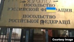 У Києві кілька сотень людей пікетують у суботу будівлю посольства Росії, протестуючи проти її втручання у внутрішні справи України.