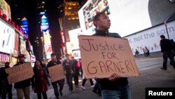 Тисячі людей вийшли на вулиці американського Нью-Йорка після рішення суду присяжних не висувати звинувачень поліцейському за смерть темношкірого американця при затриманні.