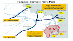 Напередодні в «Газпромі» заявили про готовність постачати газ в Україну не через пункти пропуску, які перебувають на території, контрольованій сепаратистами. Але речник російської компанії Сергій Купріянов наголосив, що перерахованої «Нафтогазом» передоплати вистачить тільки на постачання палива до кінця тижня.