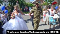 «Це перший шлюб херсонця, який бере участь у бойових діях в зоні АТО. Тому ми – волонтери, не могли лишатися осторонь і взяли на себе усю організацію цього весілля», – розповіла Радіо Свобода координатор Херсонського центру допомоги військовим Галина Уманець.