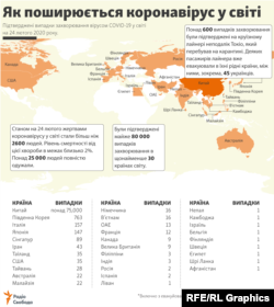 Національна комісія з охорони здоров’я Китаю 25 лютого повідомила про 71 нову смерть від коронавірусу та 508 нових підтверджених випадків.