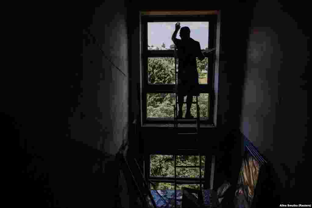 На фото – волонтери організації змінюють вікна у Миколаївці Донецької області.
