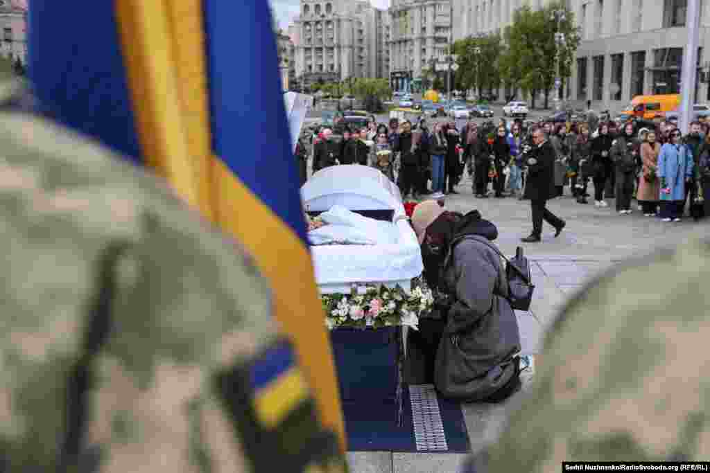 Побратими та близькі прощаються із загиблою військовою на Майдані Незалежності