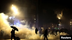 Повідомляється, що кілька поліцейських отримали поранення в сутичках, а одного протестувальника забрала швидка допомога.
