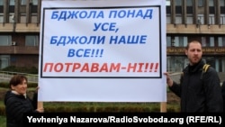 Як повідомляє кореспондент Радіо Свобода, учасники мітингу вимагають, щоб парламент ухвалив закон про захист бджільництва і запровадив більш жорсткий контроль за використанням пестицидів й інших хімікатів, що використовуються при обробці сільгоспугідь.