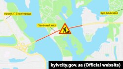 Рух Північним мостом через Дніпро в Києві мали частково перекрити для ремонтних робіт напередодні.