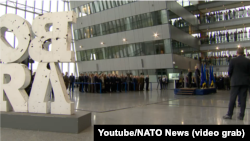 У штаб-квартирі НАТО в Брюсселі розмістили слово «Воля» з обстріляних літер із назви села в Херсонській області, яке спочатку було окуповане Росією, а згодом звільнене українськими Збройними силами.