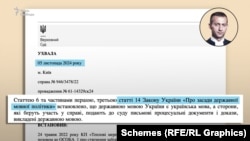 У розслідуванні «Схем» з посиланням на дані судового реєстру йдеться, що у 2025 році судді Верховного суду Володимир Погребняк, Олег Васьковський та В’ячеслав Пєсков застосували статті цього нечинного мовного закону під час розгляду спору щодо кредиторських вимог між компаніями на суму понад 2 мільярди гривень. У розмові з журналістом суддя Погребняк спершу відмовився від коментарів.