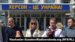 Активісти херсонського Євромайдану пікетували Херсонську міську раду, заявляючи, що міська влада, по суті, схвалила проведення під час урочистостей на честь 70-річчя перемоги 9 травня ходи та інших масових заходів, організованих представниками Компартії і «Опозиційного блоку».