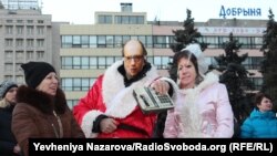 Також в ході акції було організовано спеціальний флеш-моб: активісти у костюмах Діда Мороза та Снігуроньки у масках з обличчями Арсенія Яценюка та Наталії Яресько запакували касовий апарат у новорічну торбу і поклали її під штучну ялинку, встановлену протестувальниками на площі. Як пояснили організатори, вони хотіли таким чином показати які «дарунки» підготував уряд підприємцям напередодні Нового року.
