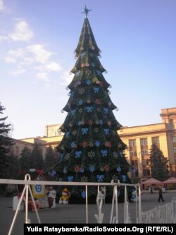 У центрі Дніпропетровська на площі героїв Майдану на місці, де стояв пам’ятник Володимиру Ленінові, відкрили головну міську ялинку