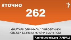 У 2015 році співробітники Служби безпеки України отримали від держави 262 квартири. Таку інформацію надали у фінансово-економічному управлінні Служби безпеки України у відповідь на запит #Точно, проекту Радіо Свобода.
