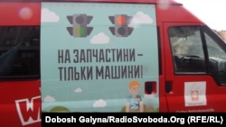 П’ять мікроавтобусів і автомобілів вирушили вулицями міста до пункту прийому візових анкет у мікрорайоні Пасічна. На них були плакати та прапори з написом «На запчастини – тільки машини!».