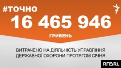 Управління державної охорони України протягом січня витратило на власну діяльність 16 465 946 гривень.Така інформація міститься на порталі використання публічних коштів e-data, повідомляє #Точно, проект Радіо Свобода.