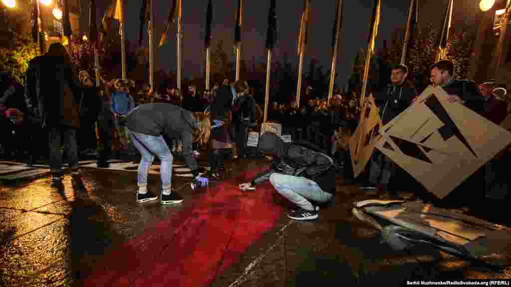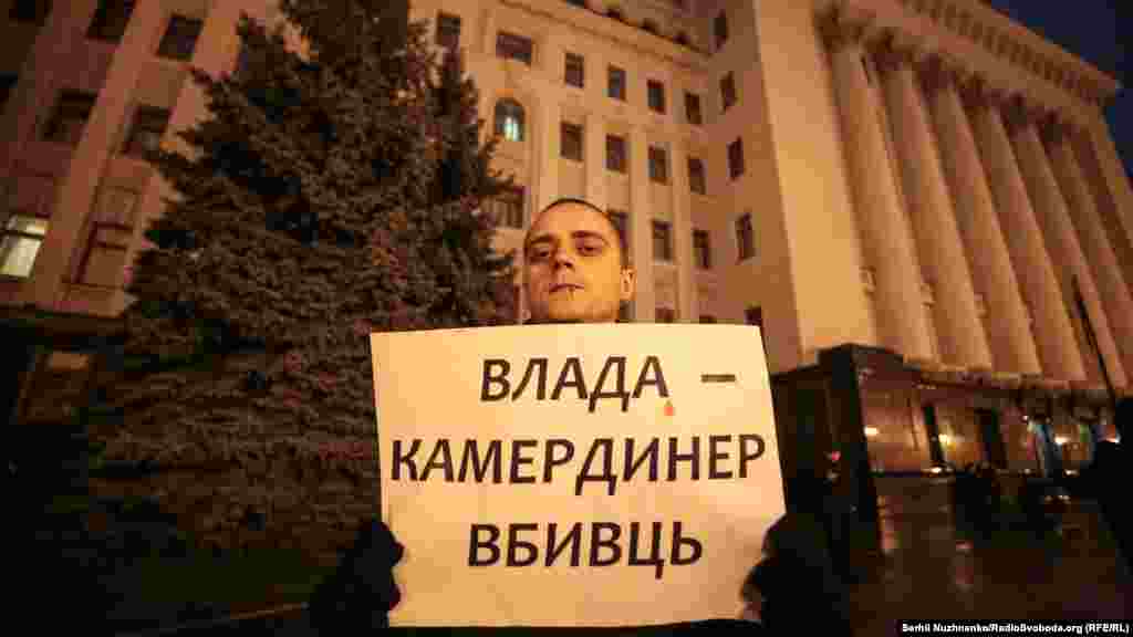 Під будівлею створили напис «Хто наступна Гандзюк?»