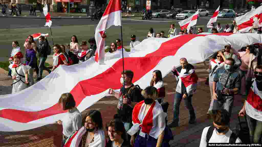 У Києві відбулася хода на підтримку протестувальників у Білорусі.