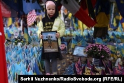 До народного меморіалу пам'яті з прапорів прийшли люди з портретами полеглих на війні близьких, квітами та лампадами, щоб вшанувати їхню пам’ять.