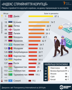 «Індекс сприйняття корупції»: Хто піднявся у рейтингу, а хто впав? – інфографіка